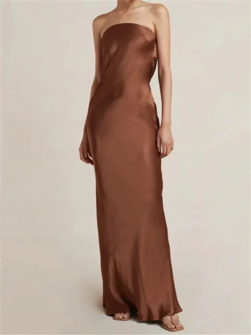 Women Sleeveless Backless Dress, Solid Color Strapless Elegant Cocktail Party Wedding Banquet Dress