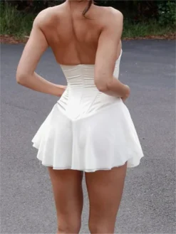 Women Summer Dress Criss-cross Bandage Strapless Pleated Mini Dress Party Club Vintage Sexy Fairy Dresses