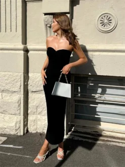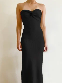 Womens Slim Dress Solid Color Cross Off Shoulder Design Knit Versatile Elegant Cocktail Dress
