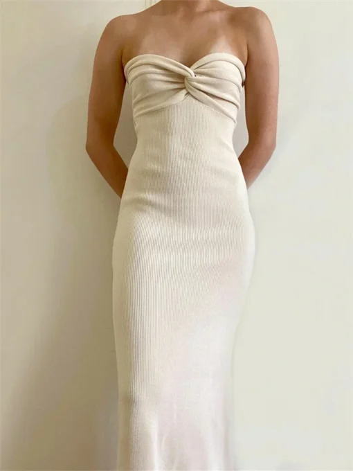 Womens Slim Dress Solid Color Cross Off Shoulder Design Knit Versatile Elegant Cocktail Dress